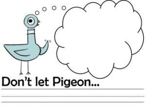 Have each of your students think of something that they do every day, something that might seem ordinary to them but would be very extraordinary to see a pigeon do. Maybe it’s learning to ride a bike or going to an amusement park. Now have your students write and illustrate their own story with the Pigeon doing the activity they decided on. As they work on their stories, encourage students to think about how the Pigeon might react to this activity. How might other people react to seeing a pigeon doing that thing? What funny problems might arise for the Pigeon and everyone around him?