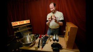 Foley art is the process of creating everyday sounds for film, television, and video games using a variety of props, materials, and surfaces. The noises made from these objects end up sounding like footsteps, rustling clothes, or the swish of a sword. These sounds are used to enhance the realism and storytelling of a production. In this activity, students will get to experience the process of creating Foley art for a scene from The Legend of Sleepy Hollow using items found within the classroom.